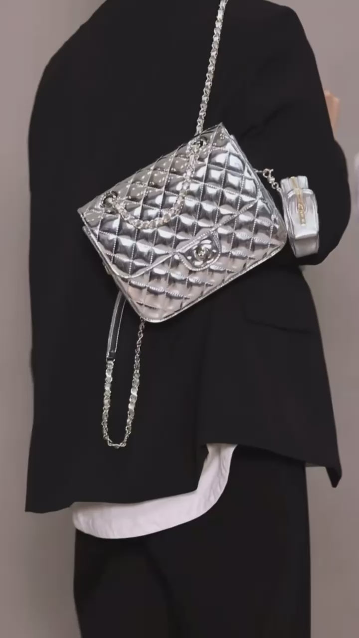 Constructed from premium mirrored metallic materials, this bag offers a luminous finish that effortlessly catches the light. The high-quality materials ensure durability and a sophisticated sheen that elevates any outfit.