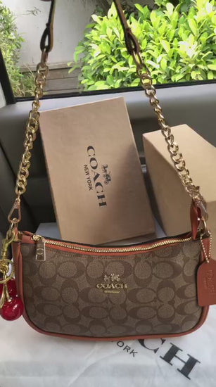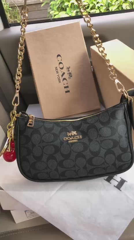 Luxury Brand Co-ach Teri Shoulder bag with Cherry Keychain