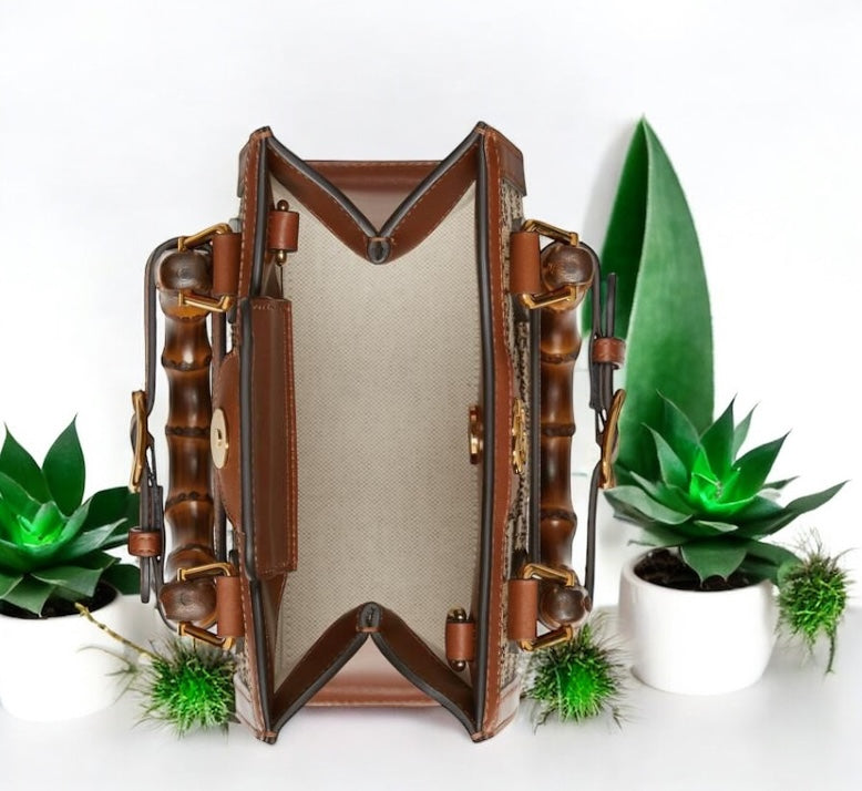 The Guc ci GG Mini Diana Leather Tote Bag combines timeless design with modern functionality. Crafted from premium leather, it features the iconic GG motif and a signature bamboo handle, offering a refined yet distinctive look. Its compact size makes it ideal for carrying essentials with effortless elegance, while the durable construction ensures lasting appeal. Perfect for elevating any ensemble, this tote blends classic Gucci heritage with practical sophistication.