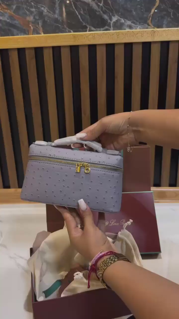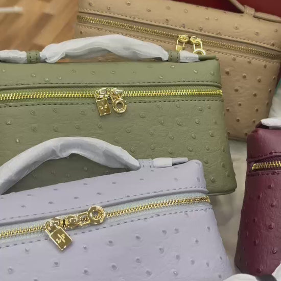 Introducing the Loro Piana Extra Pocket Lunch Box Bag — the perfect solution for those who need a luxurious, functional, and spacious bag designed to elevate your daily routine. This exclusive clutch bag is crafted with exquisite ostrich leather details and an elegant ostrich-leather handle and shoulder strap for comfort and style. Experience the ultimate combination of practicality and high-end design with this luxury brand essential.