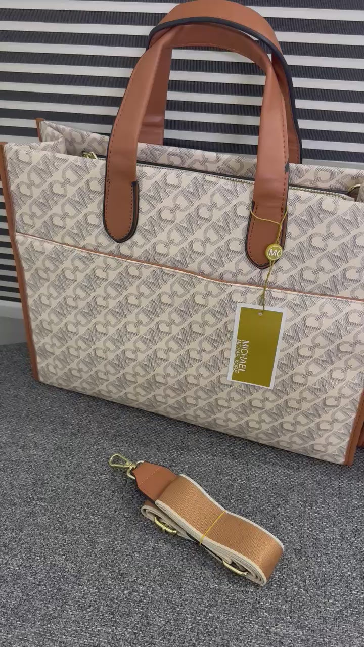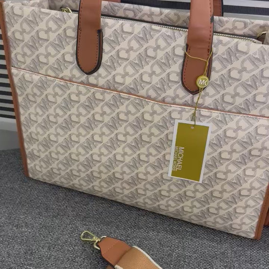 Famous Brand M-K Mic-hael Ko-rs Gigi Large Empire Signature Logo Tote Bag