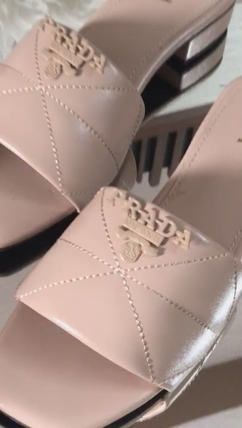 Fashion Brand Pra-da Block Heel slipper for Women