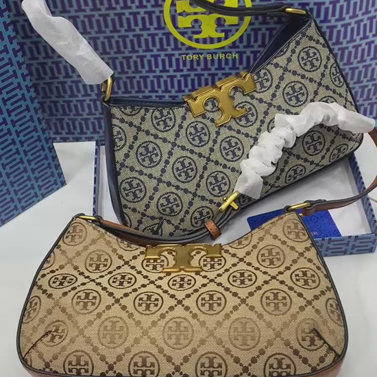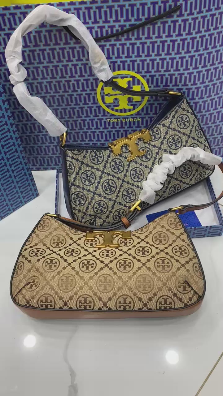 Trendy Brand T To-ry Bur-ch Eleanor Slim T Monogram Canvas Shoulder Bag for Women